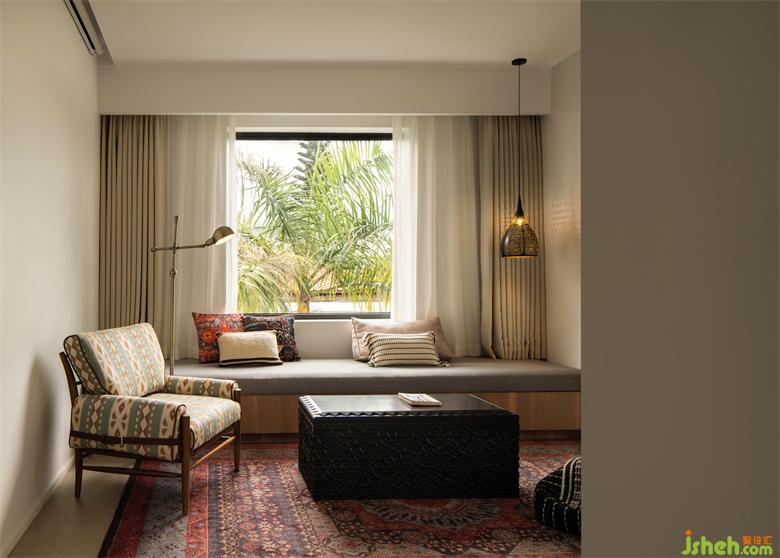 公共區(qū)域中豐富的木質(zhì)家居陳設(shè),以柔和的肌理為空間的情緒傳遞溫暖。樹木生長的年輪印刻著過往的歲月痕跡,也傳遞著都市人勇于掙脫城市束縛、投身自然的設(shè)計(jì)理念:度假酒店設(shè)計(jì)以城市孤島中的漂浮意象,度假酒店設(shè)計(jì)投射現(xiàn)代人內(nèi)心渴望理解與親近的孤獨(dú)狀態(tài)。