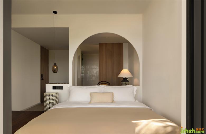 埂上設(shè)計選擇將“大道至簡”的理念貫穿空間的塑造全過程:度假酒店設(shè)計以質(zhì)樸的柔和底色渲染整體氛圍,注意空間留白和建筑內(nèi)外的溝通;而軟裝方面,則偏好使用棉、麻織物的柔和觸感和極富民族特色的圖案進行點綴,度假酒店設(shè)計塑造具有豐富想象空間的“軟性”精神世界。