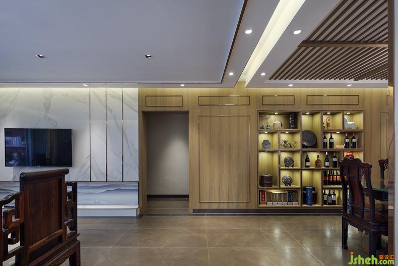 餐廳與客廳相連為一個整體使得整個空間更加寬闊、舒服,深圳室內(nèi)設(shè)計師定制的酒柜是業(yè)主的心頭好,既作墻用,節(jié)省空間又作酒柜,可擺放藏酒與藝術(shù)品,柜子鮮活的嫩木色彩與紫檀餐桌的厚重紫黑色形成對比,既有清新活潑又有醇厚古樸,兩種原木色同處一個空間互相制衡,又相得益彰。