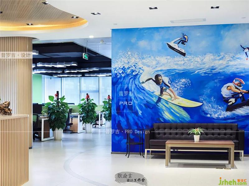 過道的圓弧形的弧度設(shè)計(jì),完美地貼合“水”的主題,整體的設(shè)計(jì)大方雅觀。辦公室設(shè)計(jì)