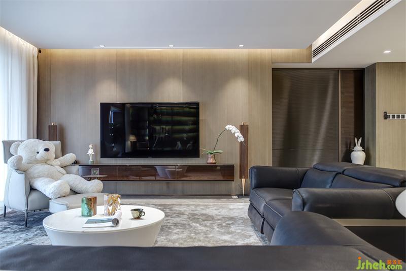客廳三分之二的區(qū)域用作休閑娛樂及會客區(qū),大面積灰白扎染花色的羊毛地毯大致勾勒出區(qū)域輪廓,兩組由不銹鋼條支撐的純意大利進口真皮沙發(fā),觸感柔軟舒適,彈性適中,忙碌了一天后坐上真皮沙發(fā),疲憊便卸下了。