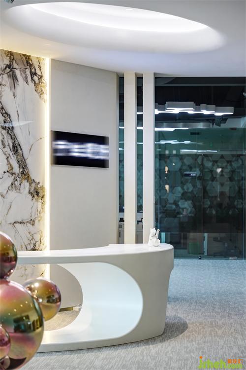門口即以大理石開篇,將現(xiàn)代時(shí)尚的氛圍感拉滿。在一眾辦公室之中,也更顯清朗,不流于俗。深圳辦公室設(shè)計(jì)一扇玻璃門,通透清凈,讓人能窺見室內(nèi)的情景,也能讓里面的人能及時(shí)知悉外面的來(lái)客。