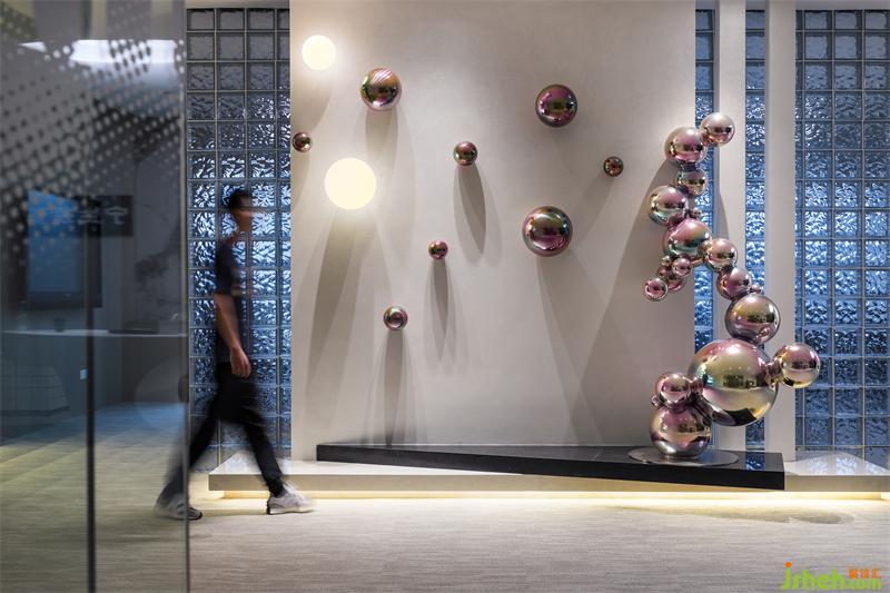 進(jìn)了大門“仿佛若有光”,多處燈光設(shè)計(jì),讓人應(yīng)接不暇。但是前臺(tái)墻上的白底黑字,又尤為矚目。“逐浪人生,勇者無(wú)畏”的SLOGEN,既簡(jiǎn)約又高級(jí),同時(shí)又多一點(diǎn)莊重感和儀式感,醒目卻不張揚(yáng),給人以鼓舞。