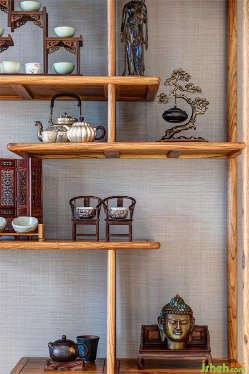 品茗區(qū)的背景墻,我們采用了煙青色的大理石磚,就像一杯剛剛沏好的綠茶,濃淡適宜,意在制造一種清遠(yuǎn)閑散的氣氛。