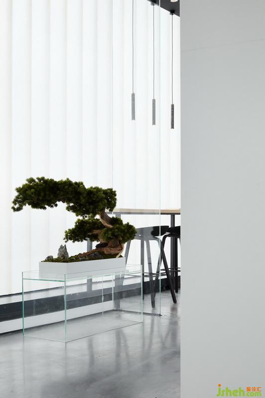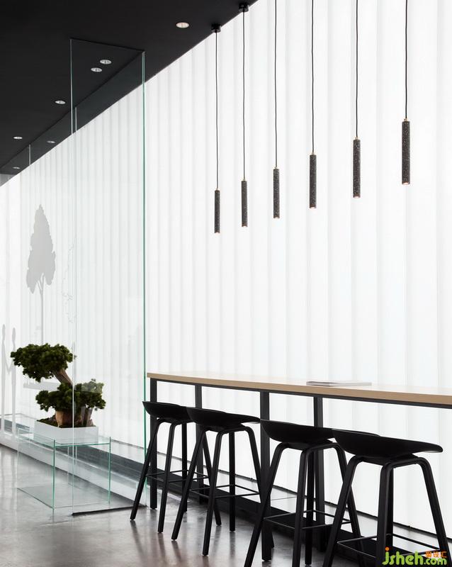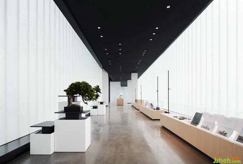 空間的大體色調最終確定為黑白。不過與司空見慣,以黑白顯“酷”的思路毫無沾染。而是意念上取“天地乾坤”,表現層面取“白紙濡墨”。因此在呈現的姿態(tài)上,并不作富視覺沖擊力的切割,不刺激眼球,而是將空間呈山水手卷般舒緩的逐次展開。從室內空間關系的層面,白是一個基礎,是規(guī)矩;黑是變化身形、恣意流動或瞬爾駐足,不逾矩的姿態(tài)。兩者所呈現的形式,于音樂的層面,構建出帶有即興撩弦,音能動人的意味。中國的雅樂,琴為大音,大音希聲。希聲者,正在有無之間。富象征意義的黑白通過大幅度玻璃與戶外的環(huán)境達成銜接,視覺引導心境,在“虛實”、“有無”間輕盈穿越。
