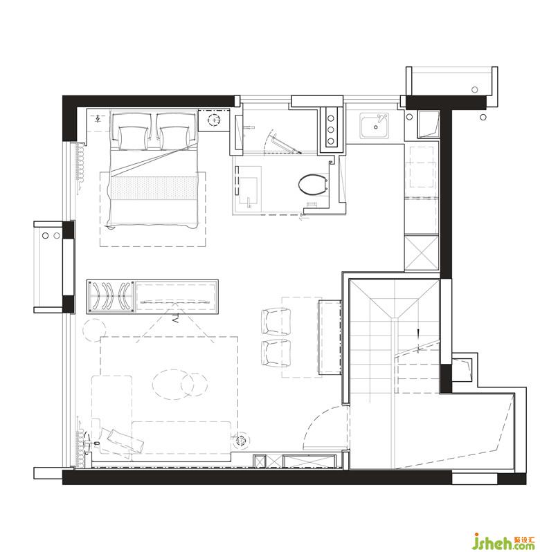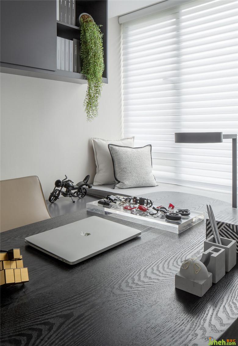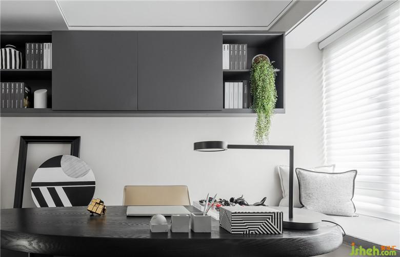 作為這三套樣板間中面積最大的一個,空間以深淺不一的灰與白作為基調(diào),線條明朗而直接。軟裝通過線條的改變來打破空間原有的穩(wěn)定,弧形圍合的茶幾,不規(guī)則的沙發(fā),與大面積圓形交錯的黑白地毯,碰撞出一種微妙的平衡感,斂去了方正空間的沉悶。