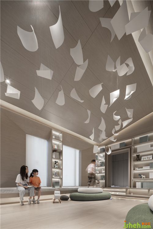 間,空間的節(jié)奏與秩序,既是空間與空間的隔,也是空間與空間的連接。平面上的轉(zhuǎn)、承、啟、合,對應(yīng)了觀者在空間中的行、望、頓、留。氣,風(fēng)在空間中流動的沉積,如山水畫的留白?!伴g”將“氣”引水入渠,因流動而生動。天地以氣造物無心而成形體,“漫卷詩書”便是“氣”在空間中游走的物化,如此這般,空間便活了,氣韻生動。當(dāng)觀者游覽整個空間,從這一段徜徉到那一端,發(fā)掘空間的可流連之處,觀者本身亦成為空間的一部分——如果“漫卷詩書”指向的是那個形而上的觀想世界,那么空間中的觀者便是那世俗的本體。