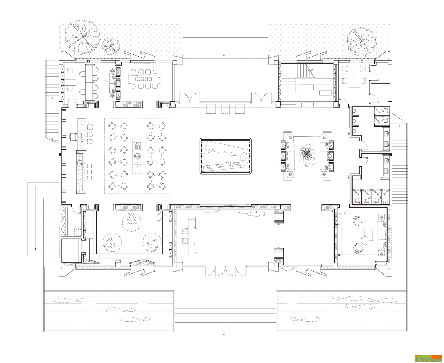 在銷售任務(wù)結(jié)束后,銷售中心將還原為小區(qū)的門樓、廳堂和物業(yè)的鄰里中心。銷售中心講究格調(diào),用以安放受眾對未來生活的期許,而還原后將成為受眾的日常生活場所,這豈非也是一個從觀想世界到世俗世界的轉(zhuǎn)變過程?為避免大拆大建,減少二次拆改,設(shè)計(jì)師對比還原前后的空間,通過詳細(xì)拆解動線規(guī)劃,將銷售空間與未來生活空間作出最大限度的重疊共生,保證空間利用率的同時,將浪費(fèi)與消耗減至最小。售樓處設(shè)計(jì)