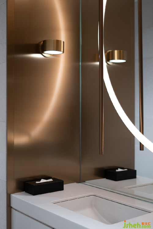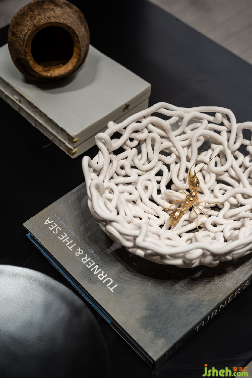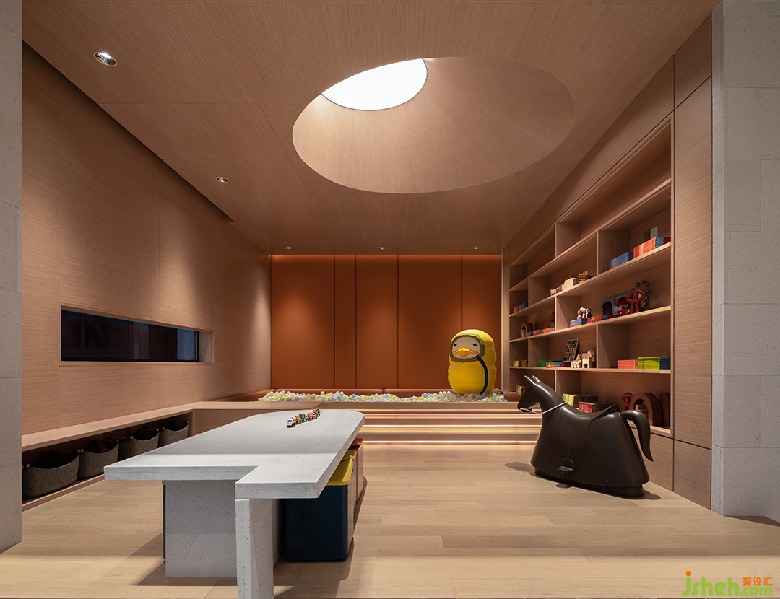 泉眼潺潺,曲渠鱗鱗,與室外的池景連成一片水域。售樓處設(shè)計釀黃酒的稻米與重達(dá)數(shù)噸的黑山石安置室內(nèi),傳遞關(guān)于時間的詩意。浪淘猶見天紋在,一石攬盡太古風(fēng)。巖石的肌理藏著時光流逝的聲響與印痕,潛移默化將觀者帶入意境之中。