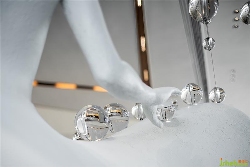 設(shè)計(jì)師將建筑性和符號意義合而為一,將其確定為空間的“靈魂”。 在現(xiàn)場,墻面變成觀者與空間進(jìn)行交流的背景,立面的二維中出現(xiàn)三維坐標(biāo)系,空間中的光源對形體進(jìn)行細(xì)微的再塑造,為展品提供了合適的展覽環(huán)境。倘若你細(xì)看,就會置身于其間,正如那些不自覺舉起相機(jī)的美麗面孔廣州銷售中心設(shè)計(jì)。