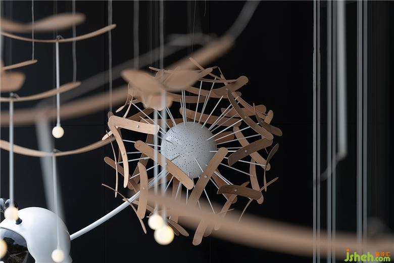 裝置手持的蒲公英和竹蜻蜓燈連接成一個(gè)動(dòng)態(tài)的畫面,由展廳外延伸入內(nèi),連接起兩個(gè)空間,有效拓展了視覺深度。
