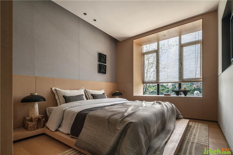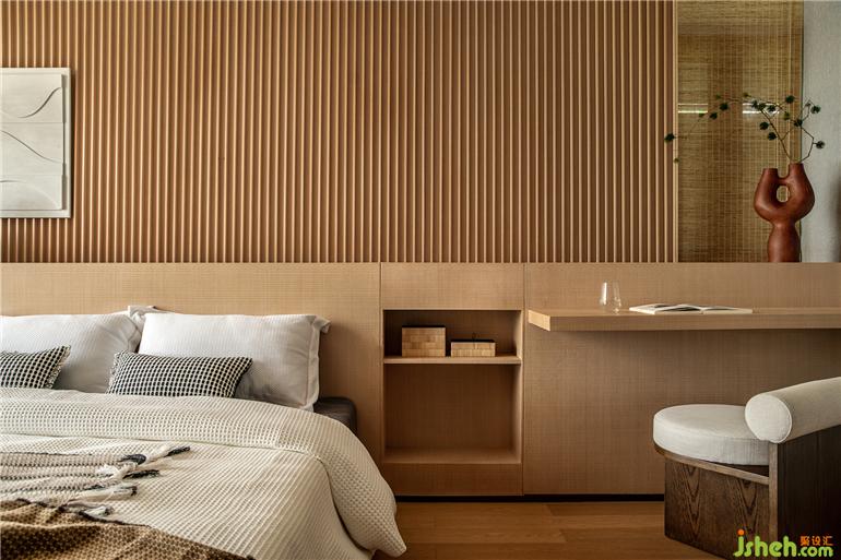 主臥床頭背景結(jié)合開窗形成了極具特色的嫻靜光影。背景窗的開合留下一線縫隙,別墅設(shè)計(jì)輕而易舉點(diǎn)燃了整個(gè)空間的情感,內(nèi)里卻充滿了隨性、溫暖、活潑的意趣。正如加斯東?巴什拉所言——所有的庇護(hù)所,所有的藏身處,所有的臥室,都有共同的夢(mèng)境價(jià)值。