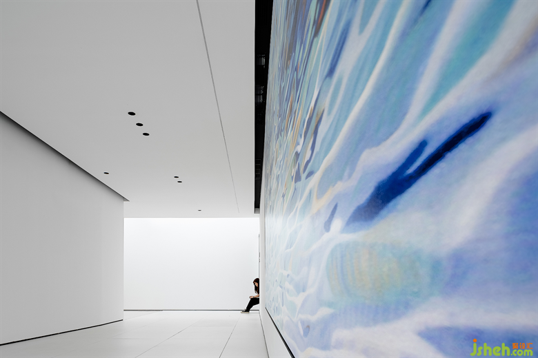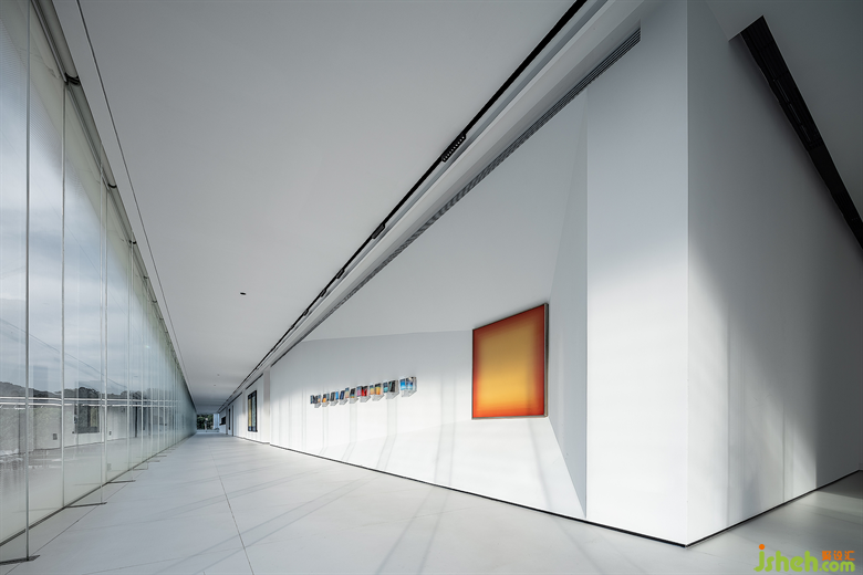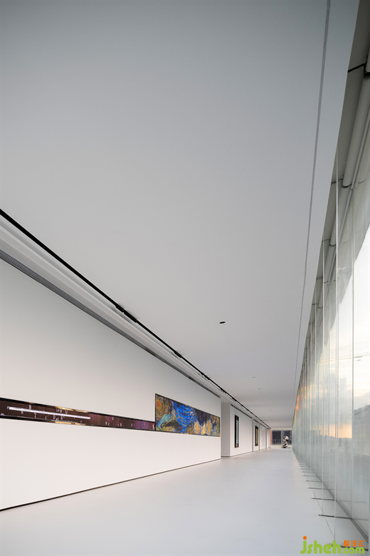 其本身的畫(huà)廊功能在真實(shí)和想象中流動(dòng),反而模糊了畫(huà)里畫(huà)外的界限——從內(nèi)向外盡覽城市繁蕪;廣州銷(xiāo)售中心設(shè)計(jì)從外向內(nèi)成為框景的櫥窗展現(xiàn)在沿街面,讓整個(gè)建筑通透又神秘。這條玻璃長(zhǎng)廊同時(shí)也是進(jìn)入樣板間的必經(jīng)之路,為游走于生活與藝術(shù)的體驗(yàn)賦予了一層哲學(xué)寓意。