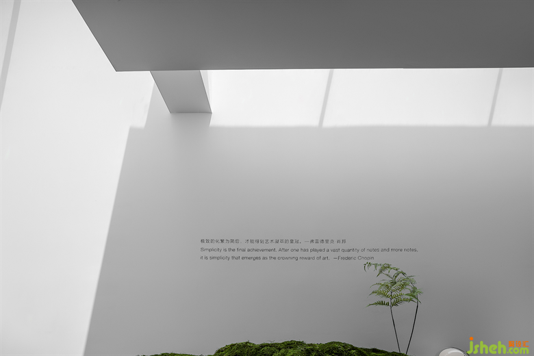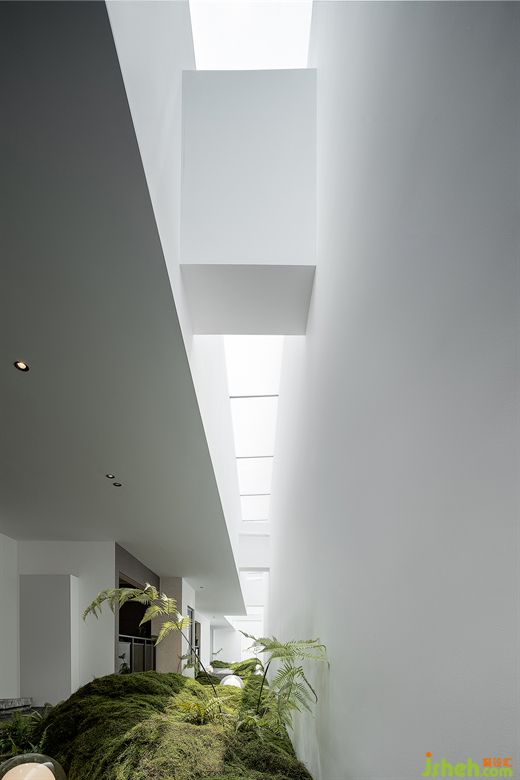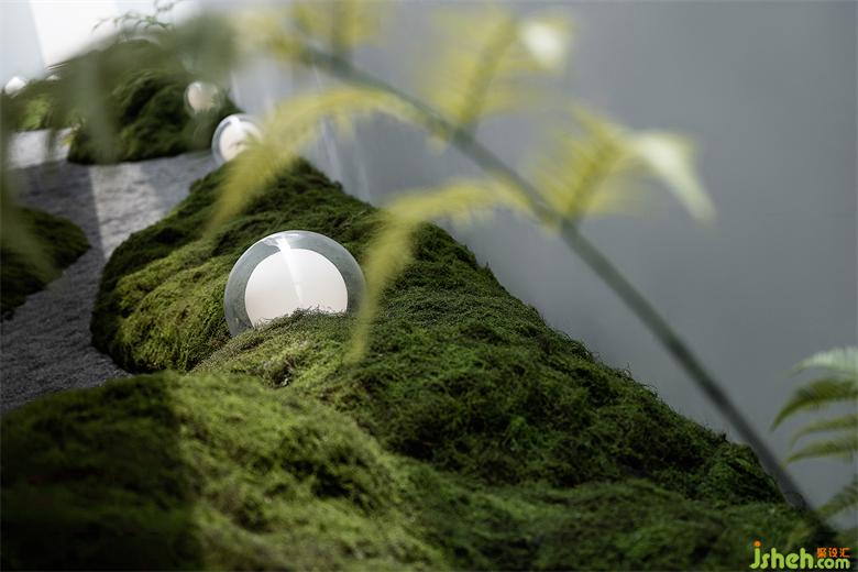 幾套樣板房共用的開敞景觀面是一個(gè)微縮的園林小徑,直面二層樓梯的開口將人們帶入一個(gè)情境的起始——整個(gè)景觀變成另一個(gè)“洞天”。