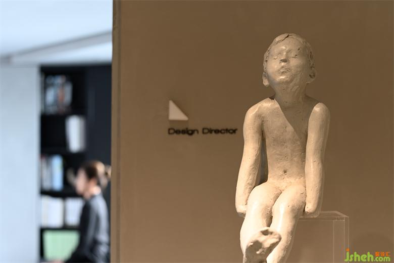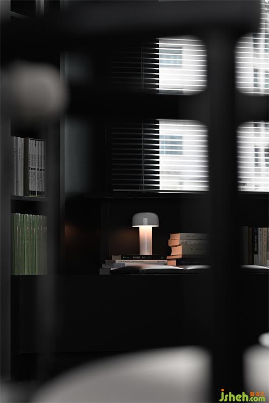 In the planar layout, the white sofaleans against the horizontally extended desk in an unconventional way, which formsthe structure of the middle island. This not only clarifies the spatial order but also leaves adequate spacefor movinglines for the entrance.
