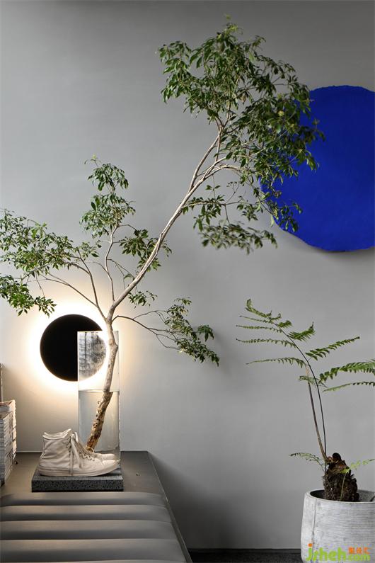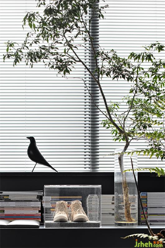 A grey sliding door serves as the boundary, with which the office area retreats into a relatively regular trapezoidal space, thereby dissolving the triangular structure’s interfering effect on spatial perception.