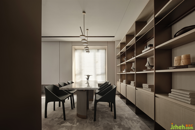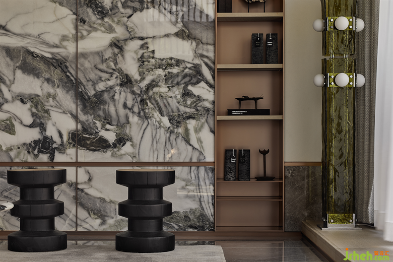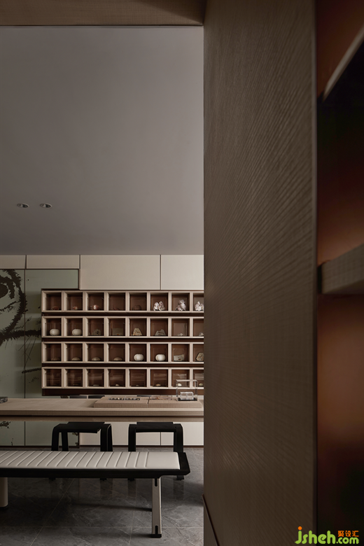 由公共區(qū)域至茶室的地面紋理,在海浪般的感性與狂狷之中由動至靜,仿佛素淡情境下的浮世繪,加深空間張力的沖突性,彌漫出一種雅俗皆融的生命力。