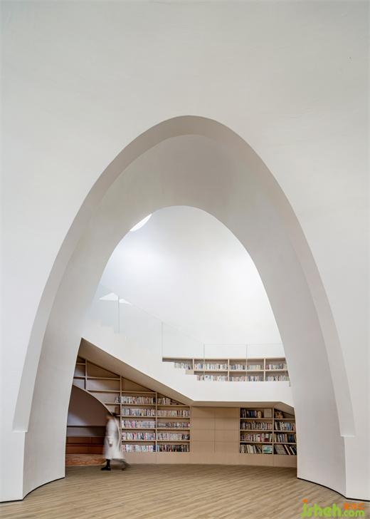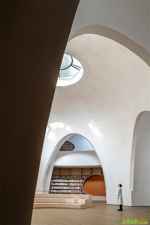 拱頂?shù)慕Y(jié)構(gòu)形態(tài)賦予書吧一種古典的空間內(nèi)核,這種既熟悉又陌生的感受為人們帶來平靜。