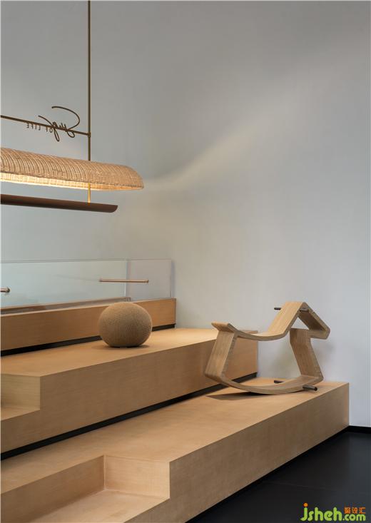 旋轉(zhuǎn)樓梯就像一顆巨大的“綠色心臟”,包裹起中間懸掛的藝術(shù)宮燈裝置,使得核心空間具有垂直向上的動勢。保利成都和頌售樓部設計宮燈的設計理念源自對情感、時間和記憶的梳理。成都銀花絲手工藝及國遺皮影將時空壓縮,外層帷幔透紗內(nèi)芯發(fā)光將內(nèi)層民俗匠造的微觀世界展開,三星堆、都江堰、絲綢之路、宗教信仰、移民匯聚、市井生活、熊貓基地,從古至今逐第呈現(xiàn)。