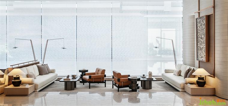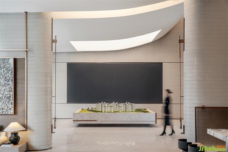 成都保利錦城和頌體驗中心裝修設計師巧妙運用引景與借景的手法,使得有限的空間營構出無限的趣味。半凸于立面的空間被改造成品茗水榭,猶如水面上的亭子,放寬建筑的尺度,提供視野延伸的契機。臨水品茗,正對池中天地;繞池而行,水榭風光成為立面點景;一引一借,互相交響成為彼此的神來之筆。