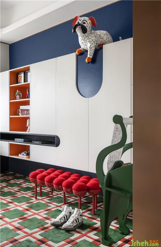主臥空間延續(xù)著公共空間的自由布局。開放式衣帽間,半落地景觀面,為空間帶來舒展的情緒,而大量的細(xì)節(jié)陳列和柔軟的織物,則豐富了空間的肌理與質(zhì)感。