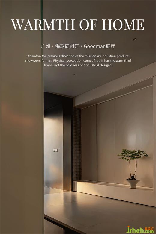 摒棄以往宣教式的工業(yè)產(chǎn)品展廳模式,擺脫“工業(yè)設計”的冰冷,展廳設計以“注重身體感知為首位”作為設計核心,位于廣州海珠同創(chuàng)匯的美國Goodman全空氣系統(tǒng)品牌展廳被賦予了家的溫暖,賓至如歸。