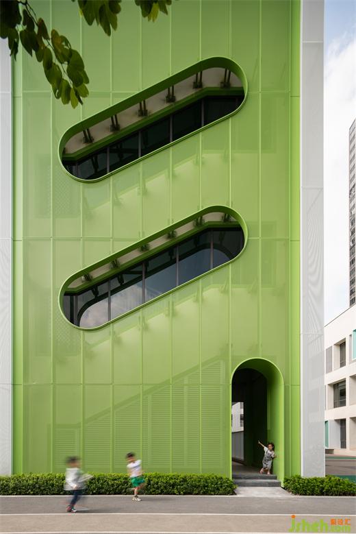 原建筑造型規(guī)整,用材單一,缺乏豐富的色彩表達(dá)與個(gè)性化需求。是以,幼兒園設(shè)計(jì)團(tuán)隊(duì)提出以“搖籃”為設(shè)計(jì)理念,重新梳理建筑、園林、室內(nèi)的關(guān)系,在整體改造不破壞原結(jié)構(gòu)的基礎(chǔ)上,賦予建筑個(gè)性化的面貌,恢復(fù)幼兒園應(yīng)有的童真色彩。