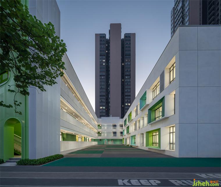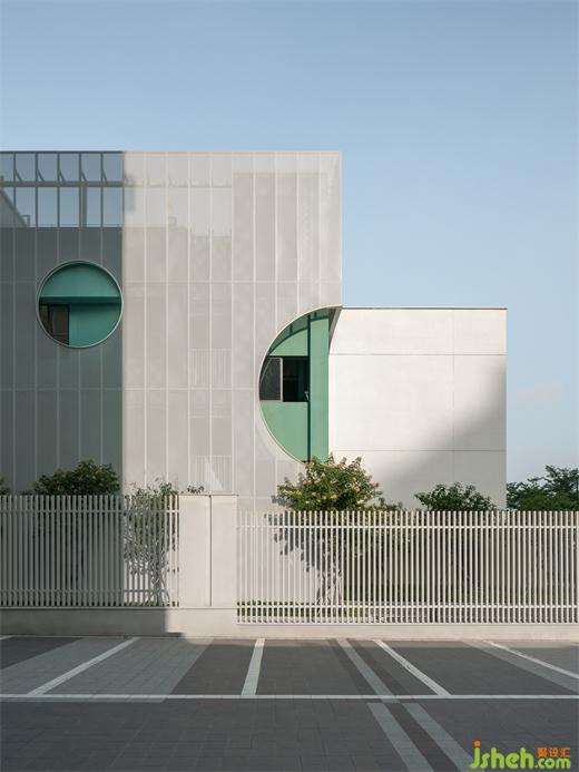 矩形視窗在設(shè)計(jì)上考慮采光,整合著立面的比例關(guān)系,帶來類似于積木壘疊的童真效果,賦予原本單調(diào)的立面節(jié)奏與變化。