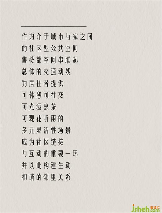 與此同時(shí),作為介于城市與家之間的社區(qū)型公共空間,售樓部空間串聯(lián)起總體的交通動(dòng)線,為居住者提供可休憩、可社交、可煮酒烹茶、可觀花聽(tīng)雨的多元靈活性場(chǎng)景,成為社區(qū)鏈接與互動(dòng)的重要一環(huán),并以此構(gòu)建生動(dòng)、和諧的鄰里關(guān)系。