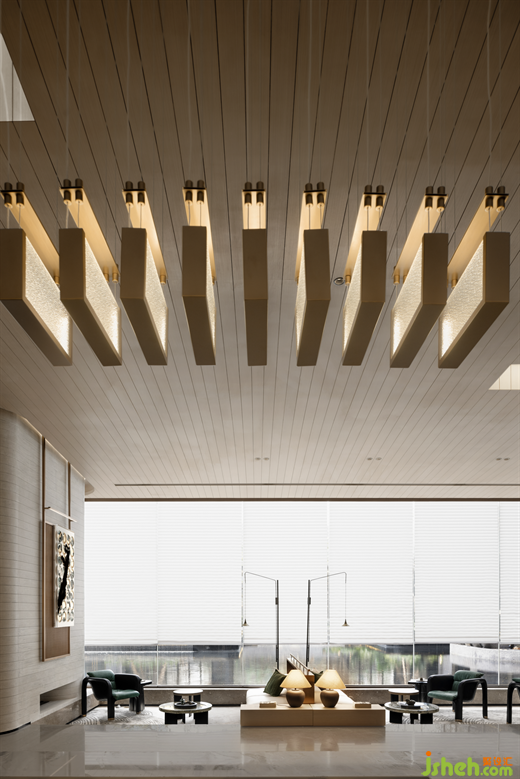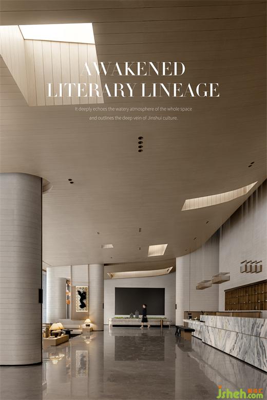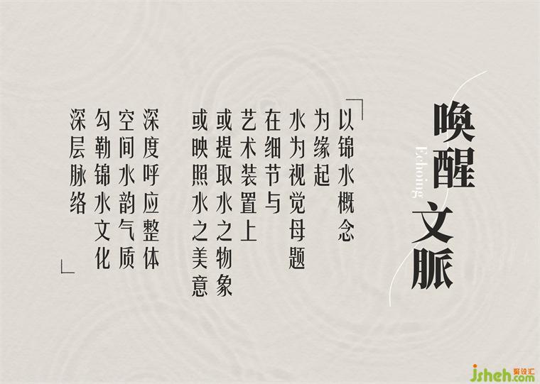 整個項(xiàng)目,以錦水的概念為緣起。水作為視覺的母題,在細(xì)節(jié)與藝術(shù)裝置上,或提取水之物象,或映照水之美意,深度呼應(yīng)整體空間的水韻氣質(zhì),勾勒錦水文化的深層脈絡(luò)。