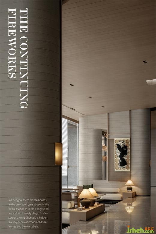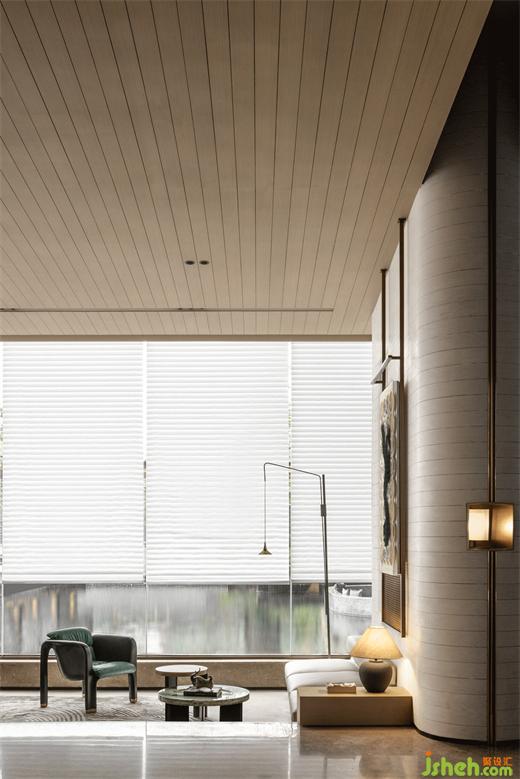 水紋形態(tài)壁燈、錦鯉裝置、陶瓷水墨藝術(shù)、窯瓷茶器等細(xì)節(jié)與藝術(shù)陳列,成都營銷中心設(shè)計將傳統(tǒng)文化與現(xiàn)代生活方式相融合,從不同的維度上詮釋著錦水對日常與藝術(shù)的滋養(yǎng),喚醒城市歷史文脈,在地域人文景觀的光譜里,為項(xiàng)目場景注入城市的靈魂。