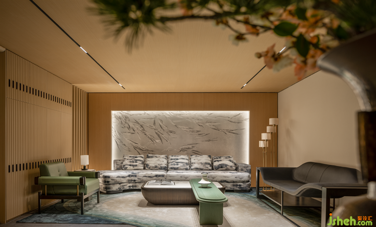 游走穿行,飲宴會友,賞物觀花,空間在虛隔與透望之間,制造著東方游園雅集的趣味。雖身處室內(nèi),卻多了幾分身處幽谷的心性豁達(dá)之感。