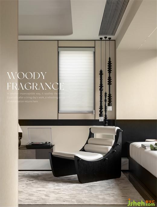 主臥的氣質(zhì)謙遜而優(yōu)雅,當(dāng)代的極簡線條里,隱隱透露出幾許復(fù)古的藝術(shù)趣味。木質(zhì)調(diào)的芬芳,以另一種不易察覺的方式,安撫著駁雜的心緒。尤其在結(jié)束一日的疲勞工作后,一種沁入心脾的復(fù)蘇感在這里得到回應(yīng)。