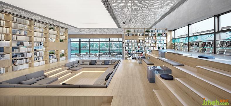 The children's entertainment zone is beside the property model display area, where kids can learn things through lively and delightful activities. The arc-shaped bookshelf, furniture from the Italian furniture brand ME TOO, combined with Legos, make the space interesting and visually attracting.