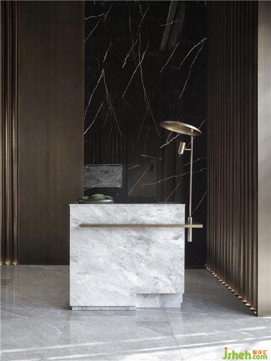 洽談區(qū)寬敞舒怡,光線通亮。意大利灰大理石地面從門廳延伸至此,墻面則選用色系穩(wěn)重、紋路清晰的保加利亞灰?guī)r板,平和的氛圍中帶著些許靈動(dòng)之氣。