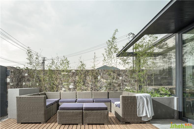 臨街的院墻由磚石砌筑,與建筑墻體的素混凝土形成風(fēng)格迥異的肌理,室內(nèi)設(shè)計(jì)師建立了最直觀的吸引力。建筑所在地除北側(cè)外并無相鄰建筑體,利用如此優(yōu)勢(shì),建筑師將建筑視作“觀看的機(jī)器”,在立面最佳觀景位置設(shè)置開窗,讓遠(yuǎn)近景致悉數(shù)“入畫”。