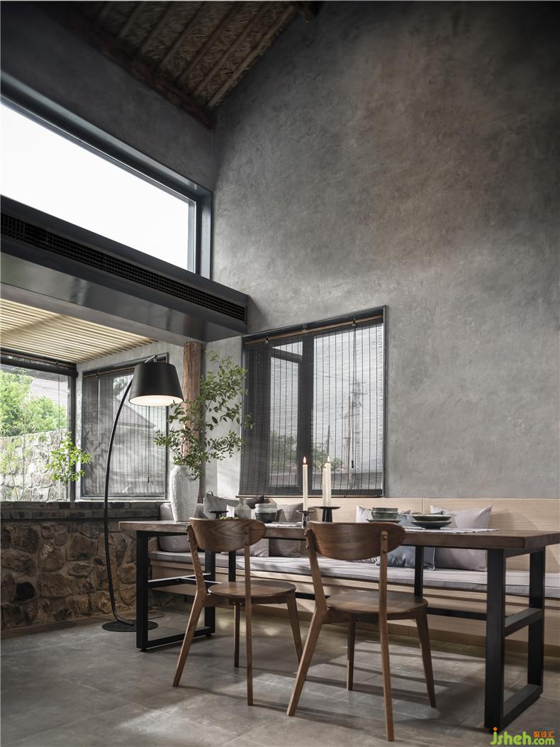 在張家莊村,全村沒有一家飯店,想要用餐只能到3公里以外的另一個(gè)村?!靶【起^”是基于餐飲需求而誕生的經(jīng)營形態(tài)。同樣尊重場(chǎng)地文脈肌理,同樣是二分半宅基地的面積,室內(nèi)設(shè)計(jì)師同樣是舊農(nóng)宅改造,“小酒館”比“紅果樹”更具公共屬性。