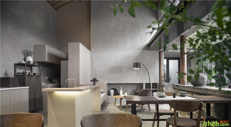 建筑原有的木屋架被更符合結(jié)構(gòu)、室內(nèi)設(shè)計(jì)師功能的混凝土取而代之,拆除下來的老料被用以修復(fù)保留下來的建筑部位。梁柱、檁條、老墻都還原著最初的形態(tài),成為記憶的喚醒——在傳統(tǒng)民居建造智慧與當(dāng)代文明建筑語言的碰撞與對(duì)話間,讓來到小酒館的每個(gè)人都印象深刻。