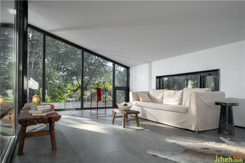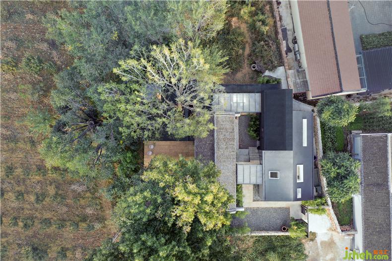 “樹下院”是新項目的名字——林立于一片白楊樹和核桃樹之間,室內(nèi)設(shè)計師東側(cè)毗鄰一大片菜地,這種原生態(tài)的場地優(yōu)勢是項目的命名淵源,也是設(shè)計的核心依托點。設(shè)計師希望創(chuàng)造一個豁然開朗的院子,把房屋周圍的樹木、山巒、陽光以及使用者的各種活動都容納其間。