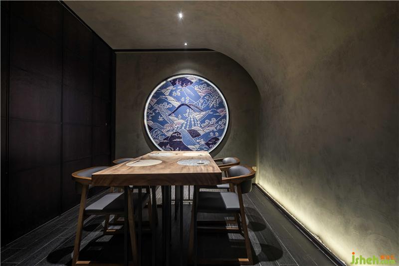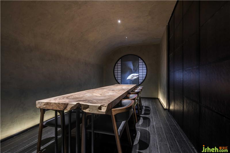 本項(xiàng)目位于廣州最繁華的淘金路街道,是一家類懷石風(fēng)格的日式料理店。懷石料理簡單而雅致,同時講究環(huán)境的清幽,茶食“和敬清寂”,尊崇自然,更多強(qiáng)調(diào)包容性。為更加的體現(xiàn)出日式料理中食物自身的特色,《旨匠》在設(shè)計(jì)上采取了極簡的裝修風(fēng)格,大面積使用灰調(diào)背景色營造出幽靜氛圍,淺色延綿的竹元素裝置增加觀感的體驗(yàn)度,竹元素一直以來都是日本文化中非常富有代表性的元素之一,也能更好體現(xiàn)主旨??珜?shí)木桌椅打破沉悶,與頂部設(shè)計(jì)巧妙的竹裝置呼應(yīng),在富有層次感的燈光效果中,使人能夠更加沉浸于美食與環(huán)境的輕松與愉悅之余,目光更集聚于光源的聚焦點(diǎn):Omakase日料大師的手作過程,巧手翻覆間佳肴天成。餐廳裝修設(shè)計(jì)