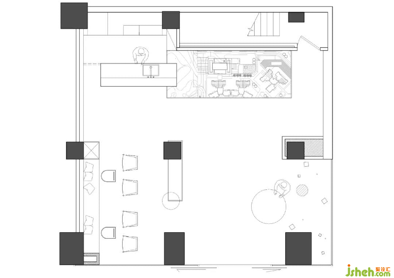 空間主色調(diào)為白色,配以鏡面和不銹鋼,打造跨越時代的未來感。藍色的趣味玩偶處于柱體中央