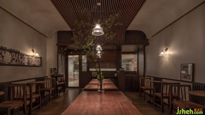 吊燈上金屬的黃銅色,極為克制的回應(yīng)當(dāng)下的商業(yè)氛圍。糖水店裝修繁體手寫(xiě)木牌菜單,木桌椅的觸感和肌理,組成了一種普通而親切的日常,和置于都市背景下的陌生。