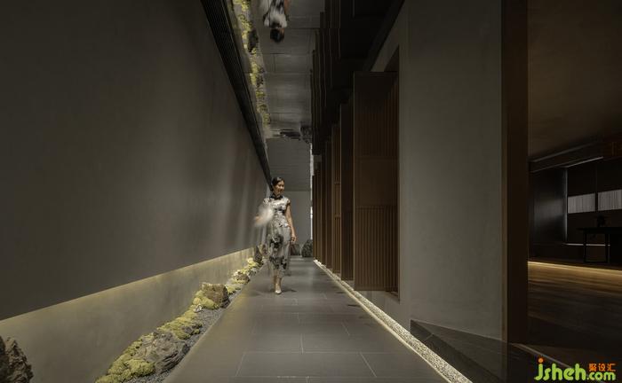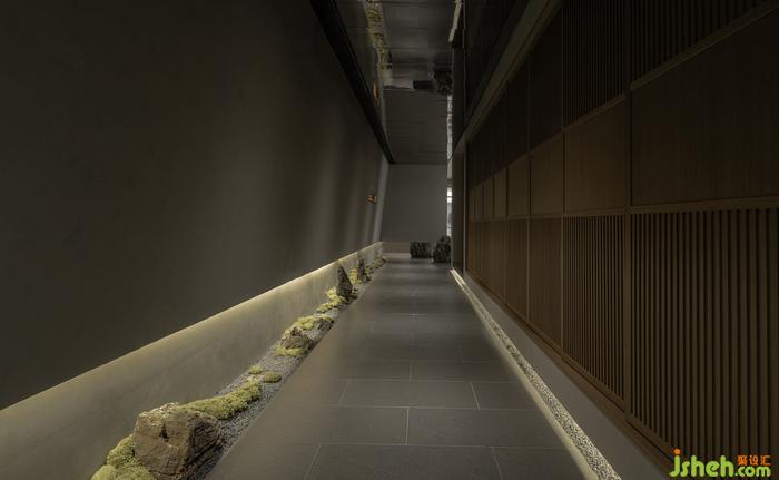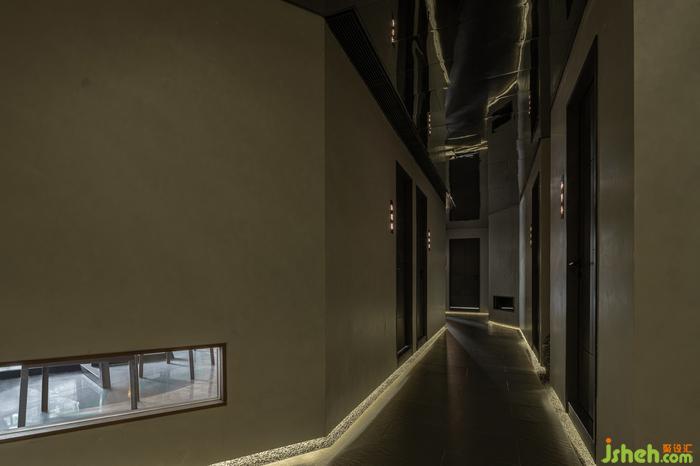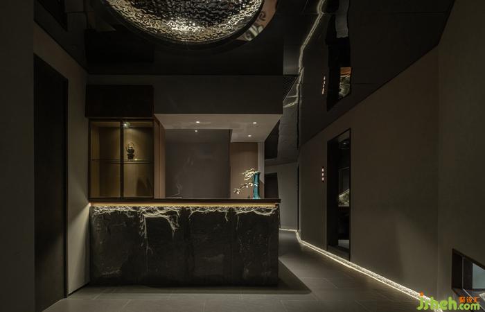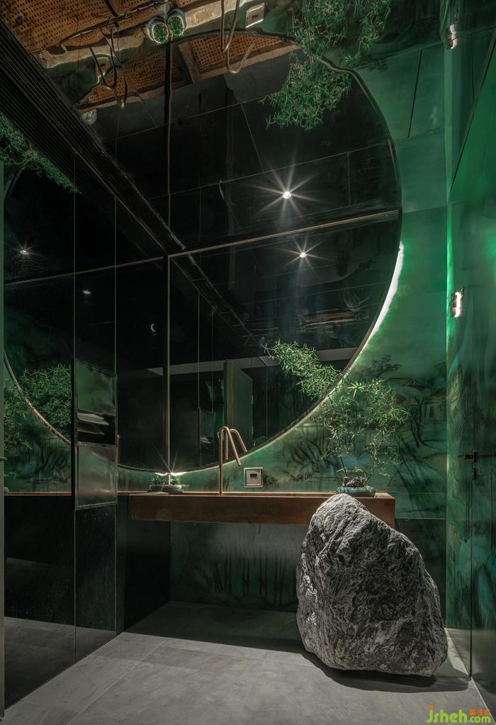 洗手間有限的空間內(nèi),茶院設(shè)計(jì)師利用光和影、虛與實(shí)結(jié)合的空間,巧妙加深空間的縱深視覺感,將四分之一圓變成一個完整的圓。