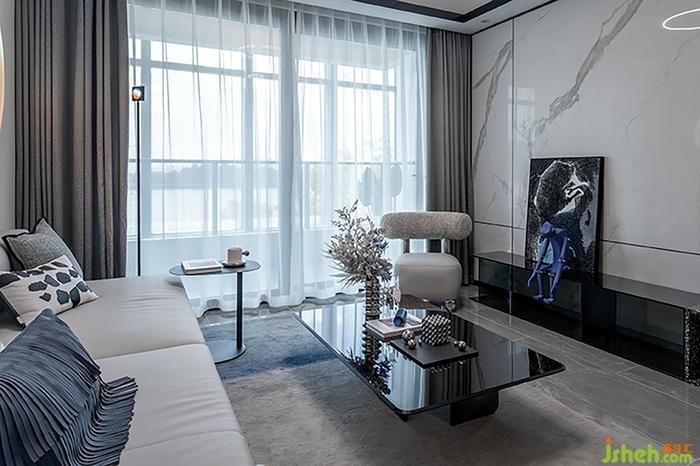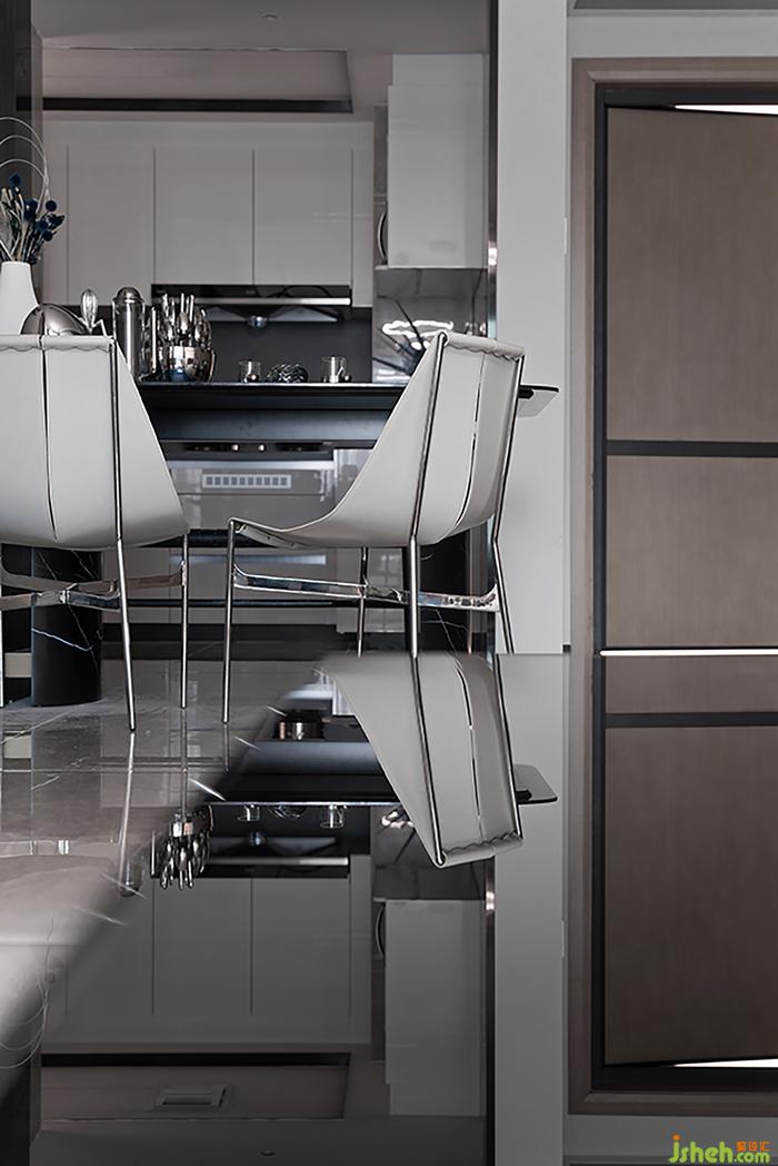 造型新奇的絢麗燈飾,光亮的金屬,打破咖色木材質(zhì)和大理石材質(zhì)的中性,樣板間設(shè)計(jì)讓空間的氛圍趣味且跳脫,打破了同質(zhì)化的設(shè)計(jì)思維所帶來(lái)的沉悶與無(wú)味,構(gòu)建藝術(shù)與功能并行的會(huì)客空間。