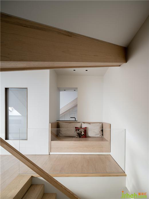 三層的閣樓上,豪宅設(shè)計師保留了原始三角頂結(jié)構(gòu),通過對稱式開天窗,在空間的體塊與樓層之間,尋找一種趣味,由此創(chuàng)建自在的尺度。
