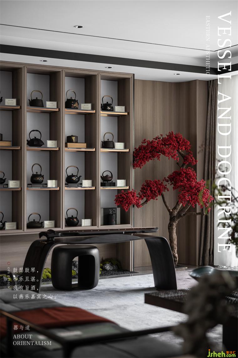OPS觀致設(shè)計在「現(xiàn)代東方」中嘗試空間的詩意表達(dá),表達(dá)現(xiàn)代設(shè)計的藝術(shù)美感與靜雅的中式韻味。
