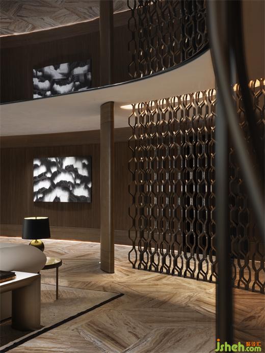 在郭子看來,“Parlor”介于公共與私密空間的交界處,或者游離于二者之外,是屬于主人的“自定義空間”,它是生活的轉場,社交的主場,在這里,或是品茗、嘗酒,或是洽談、雪茄,樣板房設計亦可容納中小型的會議、發(fā)布會,它容納著社交所需的不同功能,更讓對藝術的審美發(fā)生于其間。