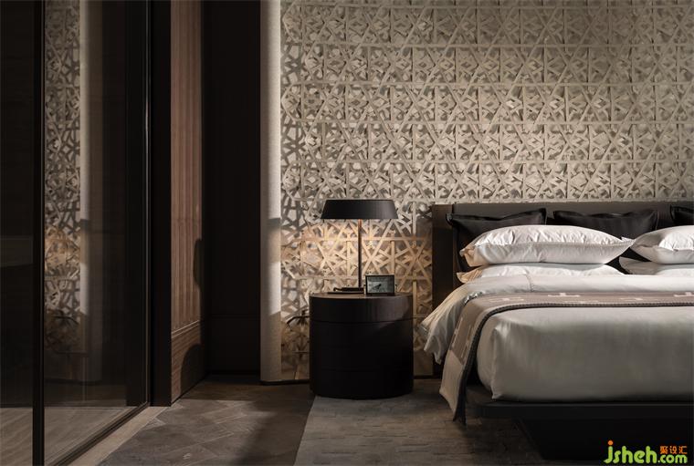 大面積的皮質(zhì)編織床背,回應(yīng)了前序空間的設(shè)計(jì)語(yǔ)言,樣板房設(shè)計(jì)只是以更為柔軟的方式,安放在了更為柔軟的空間。