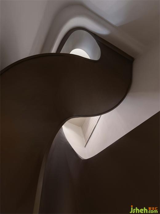 空間布局兼顧了藝術(shù)館式的自由和開放,不僅滿足了功能性的需求,更將藝術(shù)與建筑融為一體。蜿蜒而上的藝術(shù)階梯,如同一條絲帶,銷售中心設(shè)計(jì)將空間與建筑緊密地連接在一起,增強(qiáng)了空間的連續(xù)性和流動(dòng)性,為整個(gè)室內(nèi)注入了無(wú)盡的活力。