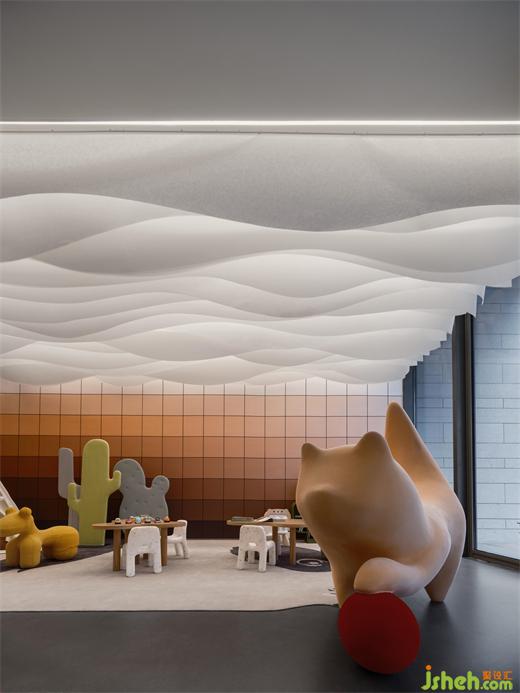 鮮明的色彩與柔軟的曲線是兒童娛樂(lè)區(qū)的特點(diǎn),輕巧可愛(ài)的動(dòng)物裝飾與玩偶構(gòu)建了一片屬于孩子們的游樂(lè)園。